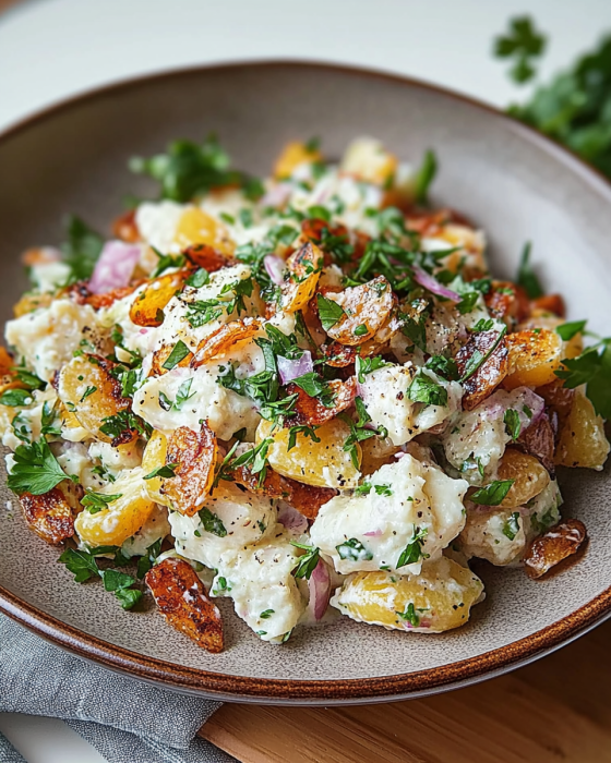 - Textur: Die Kombination aus knusprigen und cremigen Elementen sorgt für ein aufregendes Geschmackserlebnis. In unserem Rezept werden die Kartoffeln knusprig gebacken, was dem Salat eine besondere Note verleiht.