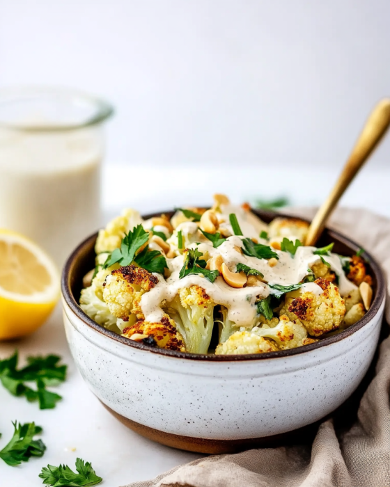 Blumenkohl ist eine wunderbare Gemüsesorte, die durch das Rösten im Ofen ihr volles Aroma entfaltet. Während roher oder gedünsteter Blumenkohl oft mild und zurückhaltend schmeckt, verwandelt das Rösten ihn in eine aromatische Köstlichkeit. Die leichte Süße des karamellisierten Blumenkohls harmoniert perfekt mit der würzig-nussigen Tahini-Sauce, die das Gericht abrundet.