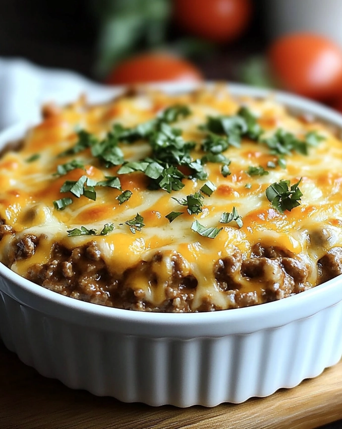 Viele Low-Carb-Gerichte sind zwar gesund, aber oft nicht so geschmacksintensiv wie die Originale. Bei diesem Auflauf ist das anders. Alle wichtigen Aromen eines Cheeseburgers sind enthalten, und die cremige Käseschicht macht das Gericht unwiderstehlich lecker.