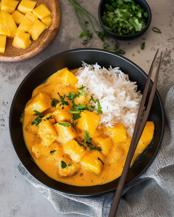 Die Verwendung von frischen Zutaten ist entscheidend für den Geschmack. Die Mango bringt eine fruchtige Frische, während die Kokosmilch für eine samtige Textur sorgt. Dieses Gericht ist ideal für ein schnelles Abendessen oder ein besonderes Familienessen. Es lässt sich leicht anpassen, sodass jeder es nach seinem Geschmack genießen kann.
