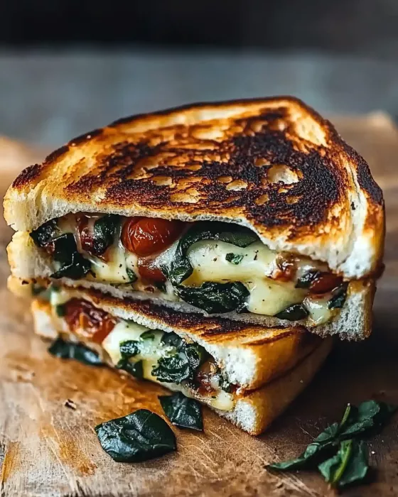 Viele Käsesandwiches sind sehr fettig und schwer. Dieses Rezept bringt mit Spinat und getrockneten Tomaten eine gesunde Note ins Spiel. Spinat ist reich an Eisen und Vitaminen, während getrocknete Tomaten eine Extraportion Geschmack und Antioxidantien liefern.