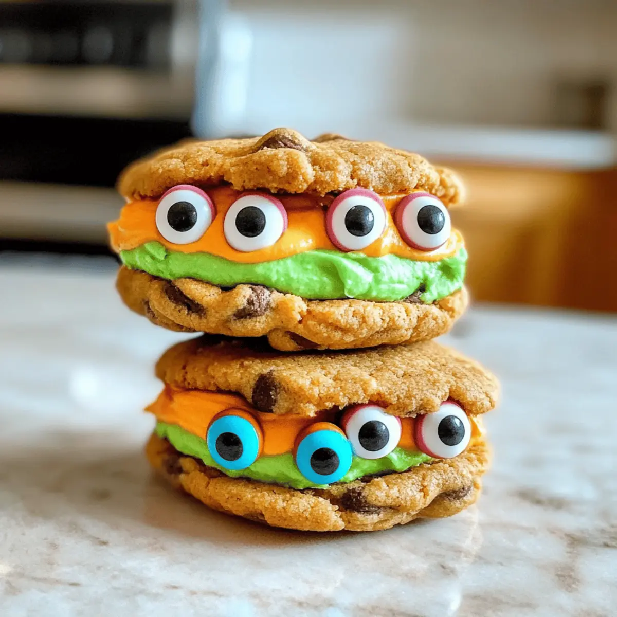 Als ich letztens im Supermarkt vorbeiging, fiel mein Blick auf die bunten Leckereien zum Halloween. Sofort kam mir die Idee für ein schnelles und lustiges Rezept: Niedliche Monster-Sandwichkekse! Diese kleinen Kunstwerke bestehen aus knusprigen Chips Ahoy-Keksen, die mit einer cremigen, bunten Buttercreme gefüllt sind – perfekt für eine gruselige Feier! In weniger als 20 Minuten ohne Backen zubereitet, sind sie nicht nur eine wahre Augenweide, sondern auch ein Kindertraum, der jedem Schokoladenliebhaber ein Lächeln ins Gesicht zaubert. Ob für Schulfeiern oder einfach als kreative Beschäftigung mit den Kleinen, diese Monster-Sandwichkekse bringen sicher Freude in jede Küche. Neugierig, wie einfach diese Kekse zu machen sind? Lass uns gemeinsam das Rezept entdecken!