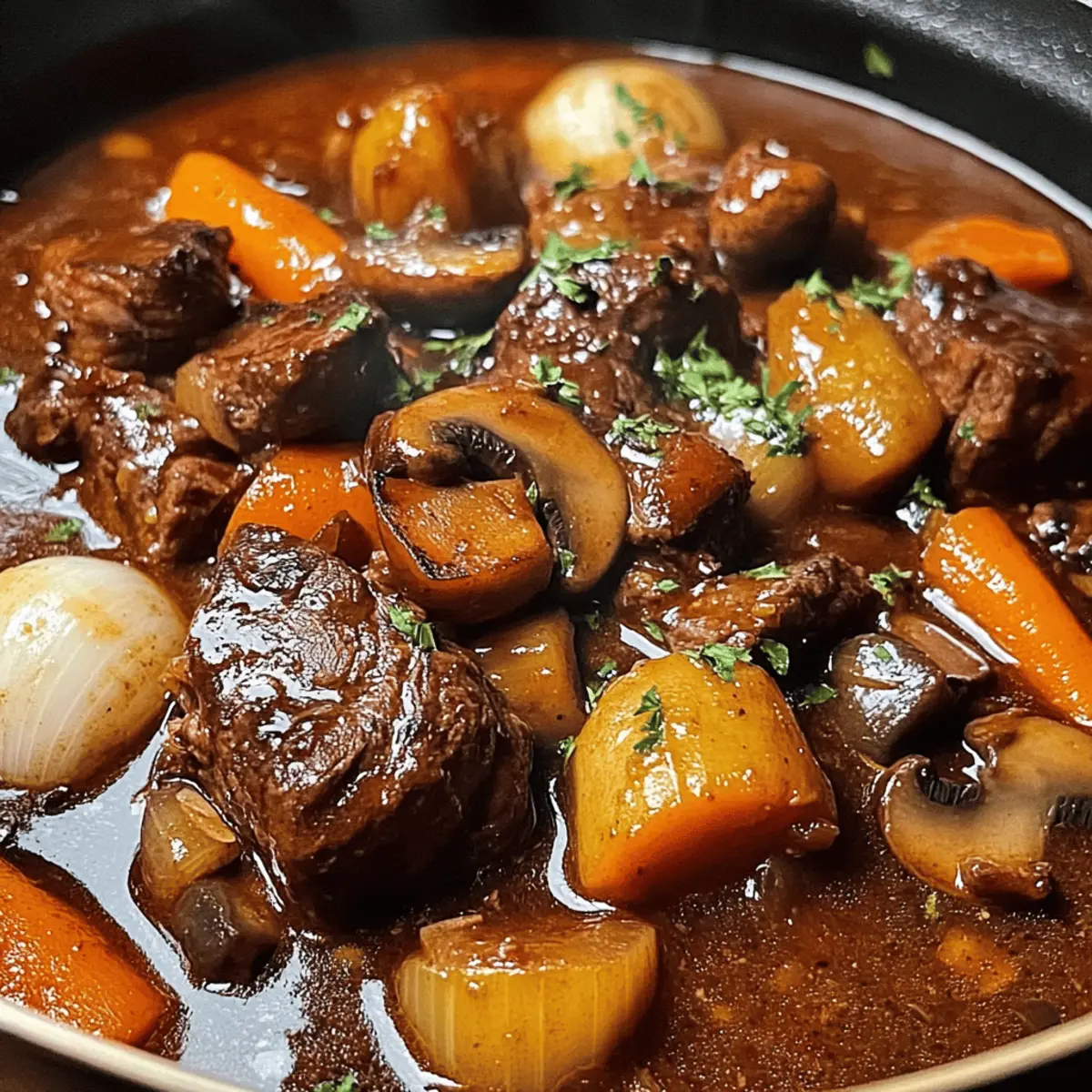 Es war ein kühler Herbstabend, als der verführerische Duft von Rindfleisch nach Burgunder Art durch meine Küche zog und mich sofort in die herzliche Atmosphäre eines französischen Landgasthauses versetzte. Dieses klassische Rezept vereint zarte Rindfleischstücke, die in einem vollmundigen Burgunderwein geschmort werden, mit aromatischen Gemüse und frischen Kräutern. Was ich an diesem herzhaften Eintopf liebe, ist nicht nur die Einfachheit der Zubereitung, sondern auch die Möglichkeit, ihn im Voraus zu machen – perfekt für ein gemütliches Dinner mit Freunden oder Familie. Das langsame Garen sorgt dafür, dass sich die intensiven Aromen perfekt entfalten und du mit jedem Bissen eine wohltuende Umarmung auf der Zunge spürst. Bereit, deine Küche in einen Ort voller köstlicher Erinnerungen zu verwandeln? Lass uns gemeinsam in die Welt von Rindfleisch nach Burgunder Art eintauchen!
