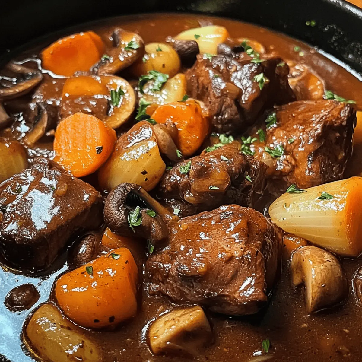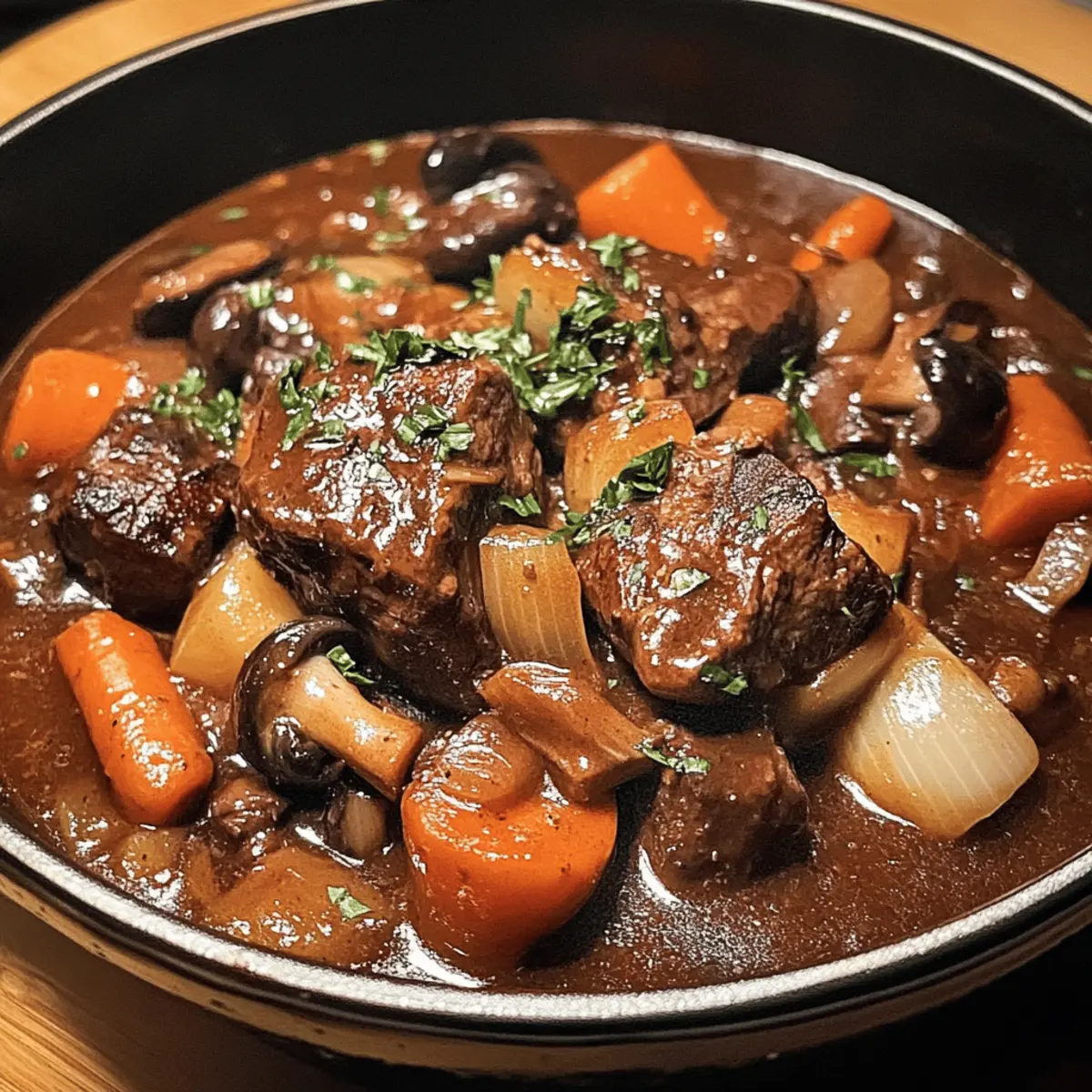 Es war ein kühler Herbstabend, als der verführerische Duft von Rindfleisch nach Burgunder Art durch meine Küche zog und mich sofort in die herzliche Atmosphäre eines französischen Landgasthauses versetzte. Dieses klassische Rezept vereint zarte Rindfleischstücke, die in einem vollmundigen Burgunderwein geschmort werden, mit aromatischen Gemüse und frischen Kräutern. Was ich an diesem herzhaften Eintopf liebe, ist nicht nur die Einfachheit der Zubereitung, sondern auch die Möglichkeit, ihn im Voraus zu machen – perfekt für ein gemütliches Dinner mit Freunden oder Familie. Das langsame Garen sorgt dafür, dass sich die intensiven Aromen perfekt entfalten und du mit jedem Bissen eine wohltuende Umarmung auf der Zunge spürst. Bereit, deine Küche in einen Ort voller köstlicher Erinnerungen zu verwandeln? Lass uns gemeinsam in die Welt von Rindfleisch nach Burgunder Art eintauchen!