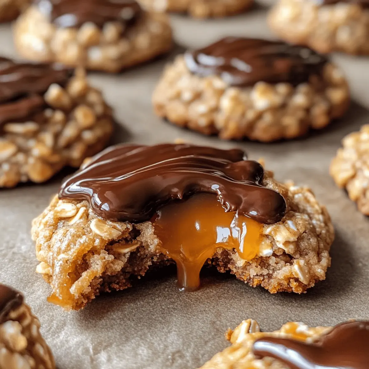 Hast du schon einmal von der Magie gehört, die entsteht, wenn warme, frisch gebackene Cookies aus dem Ofen kommen und der süße Duft von Karamell durch die Küche zieht? Diese saftigen Karamell-Haferflocken-Cookies sind nicht nur ein augenschmeichelnder Genuss, sie kommen auch mit einem köstlichen flüssigen Karamellkern, der beim Reinbeißen überrascht. Mit ihrer zarten, chewy Textur sind sie der perfekte Snack für großes Gelächter und gemütliche Nachmittage mit Familie und Freunden. Und das Beste daran? Die Zubereitung ist einfach und macht trotzdem Eindruck – ideal, um dem Alltag eine süße Note zu verleihen. Bereit, deine Backkünste zu entfalten? Lass uns gemeinsam diese unwiderstehlichen Cookies backen!