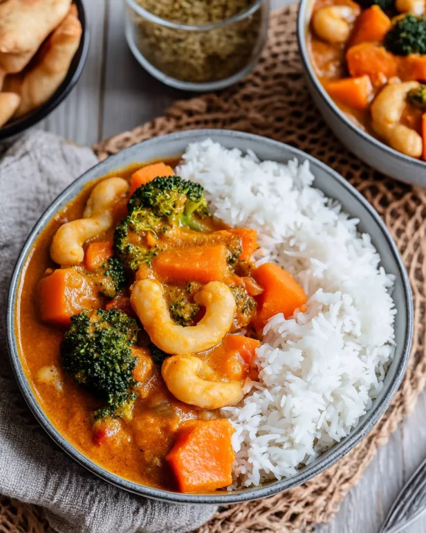 Das Süßkartoffel-Brokkoli-Curry ist ein köstliches und nahrhaftes Gericht, das die Aromen von frischen Zutaten und Gewürzen vereint. Es ist eine wunderbare Kombination aus süßen, cremigen Süßkartoffeln und knackigem Brokkoli, die in einer aromatischen Kokosmilchsoße gekocht werden. Dieses Curry ist nicht nur einfach zuzubereiten, sondern auch perfekt für eine gesunde Ernährung. Es eignet sich hervorragend für Vegetarier und Veganer, da es keine tierischen Produkte enthält. Die Verwendung von Currypulver und Kreuzkümmel verleiht dem Gericht eine exotische Note, die jeden Bissen zu einem Geschmackserlebnis macht.