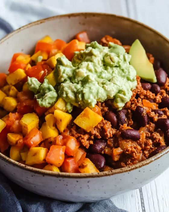 Für eine mexikanische Note können Sie auch Rinderhackfleisch oder Putenhackfleisch verwenden. Würzen Sie das Fleisch mit Taco-Gewürz, um den Geschmack zu intensivieren. Diese proteinreichen Zutaten machen den Bowl noch nahrhafter und sättigender.