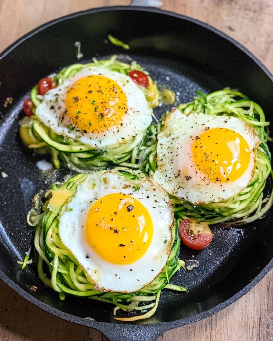 Zucchini-Nester mit Spiegelei Rezept wird Ihnen viel Freude bereiten und Ihre Gäste beeindrucken!